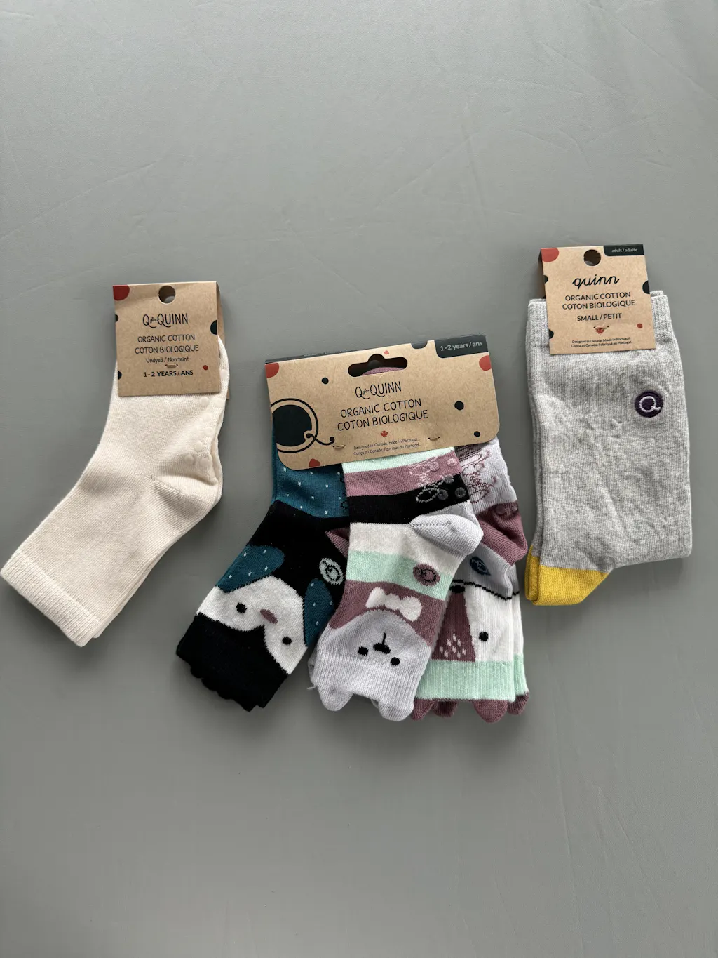 Pure (no dye) Kids' Socks With Grips - 98% Organic Cotton Q for Quinn™